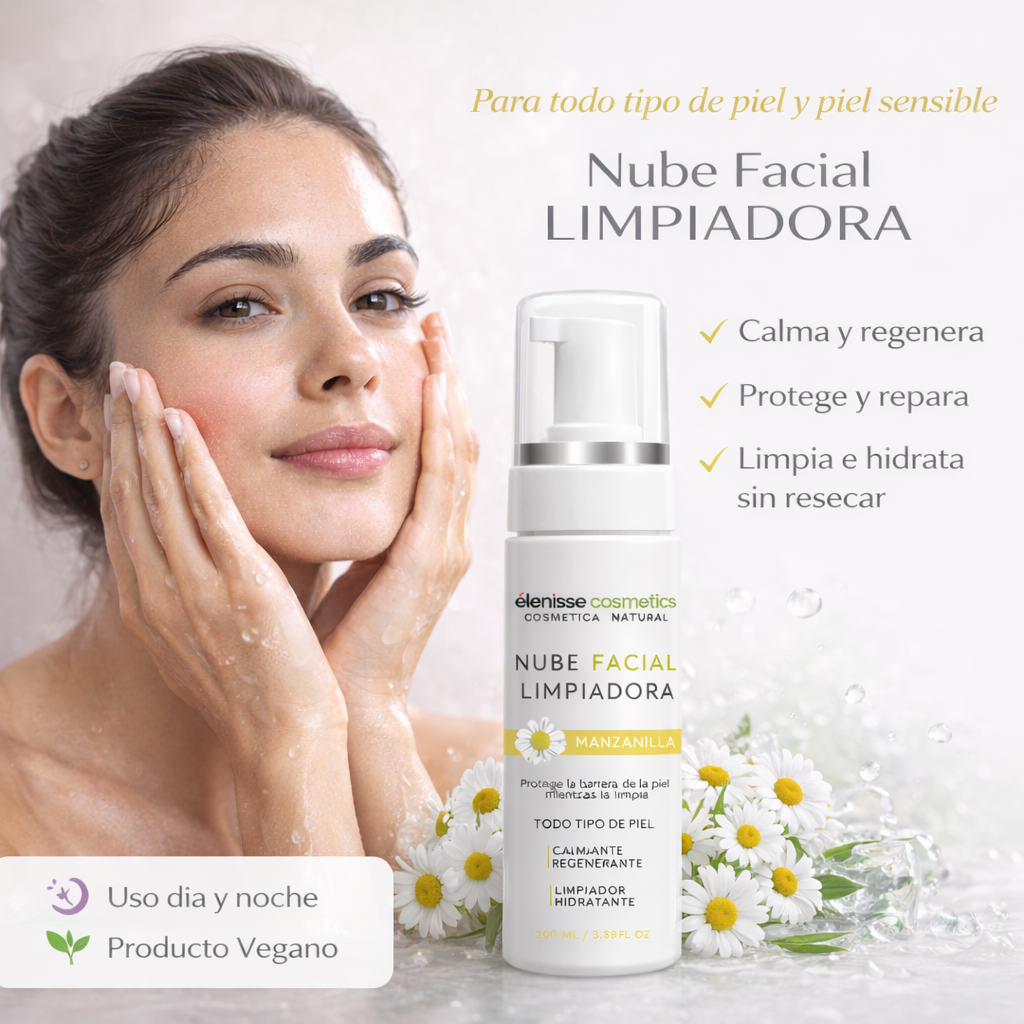 La Nube Facial Manzanilla es hipoalergénica, sin sulfatos, sin siliconas y sin parabenos. Es una fórmula vegana y cruelty free, diseñada para cuidar incluso las pieles más delicadas.