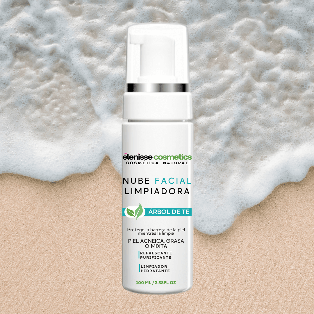 La Nube Facial Árbol de Té de Elenisse Cosmetics es una espuma limpiadora natural diseñada para piel grasa o con tendencia al acné. Su fórmula combina betaína de coco, un limpiador vegetal suave, con aceite esencial de árbol de té, un ingrediente purificante que ayuda a mantener la piel limpia y libre de imperfecciones.